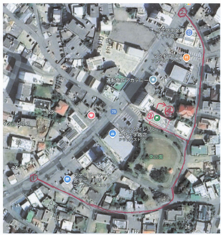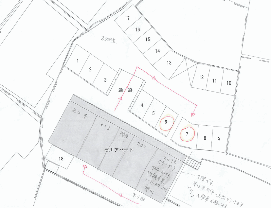 下記が石川アパートの拡大図と駐車場の具体的な場所になります。